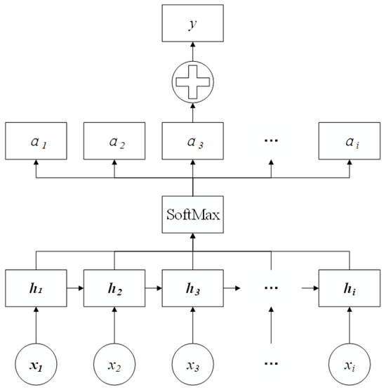 The attention mechanism, originally proposed in the context of visual processing, has revolutionized the way models handle sequential data. By assigning varying weights to different segments of the input, the attention mechanism enables the model to dynamically focus its resources on the most informative and relevant parts of the sequence. This selective focus is achieved through operations such as weighted summation, which culminates in the generation of a context vector that encapsulates the model’s attention distribution across the input sequence. Figure 3 presents a structure overview of an Attention model, where denotes the input sequence, represents the hidden layer output obtained from the BiGRU, signifies the attention distribution imposed by the attention mechanism on the BiGRU hidden layer output, and y corresponds to the final output. To ensure optimal performance and achieve more accurate predictions, the Grid Search (GS) method is employed to optimize the parameters of the BiGRU-Attention model, particularly the number of BiGRU layers and hidden units within each layer.