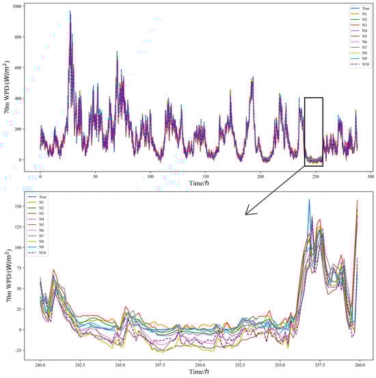 When comparing the predictive capabilities of models N8, N9, and N10, the BiGRU model exhibits slightly lower performance compared to the BiLSTM model. Nevertheless, it still surpasses the traditional LSTM model, confirming the advantage of the bidirectional recurrent structure. Furthermore, the BiGRU model boasts a faster computational speed than the BiLSTM model, thereby showcasing superior computational efficiency. Overall, the BiLSTM model stands out with its robust predictive performance, accurately predicting nonlinear variations in WPD.