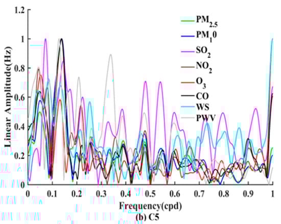 2.5 concentrations, effectively mitigates the noise that arises from using an excessive number of feature elements in the ConvLSTM model. With an increasing number of elements, the accuracy of the FFT-ConvLSTM model prediction results also increases, demonstrating improved performance in both temporal and spatial scales compared to the standard ConvLSTM model.