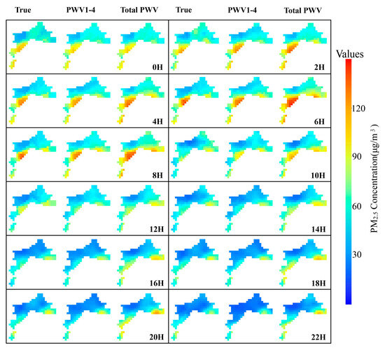 The aim of the present study is to examine the impact of stratified PWV on the prediction of PM2.5 concentrations and introduce an innovative methodology that involves using stratified PWV values derived from ERA5 reanalysis data to forecast gridded PM2.5 concentrations over the next 24 h. In order to validate the efficacy of this approach, a series of studies were conducted in this research. Firstly, the PWV for different atmospheric layers were computed using ERA5 data, and the reliability of ERA5-PWV data was validated by comparing it with radio-sounding PWV (RS-PWV) and GNSS PWV. Subsequently, the correlation between the PWV of each layer and PM2.5 was examined. Next, we constructed a prediction model based on FFT-ConvLSTM and incorporated stratified PWV as new input parameters. Finally, we evaluated the prediction results using stratified PWV with the results obtained using total PWV. This study is of considerable importance, as it improves air quality prediction models by enhancing prediction accuracy, and providing new insights for further research and application of stratified PWV data in environmental prediction.
