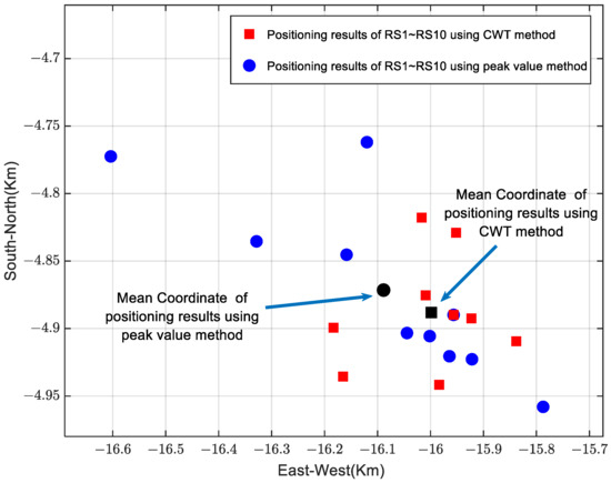 4.2. Effects of Three Electric Field Components for Positioning Accuracy on CWT Method