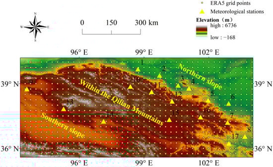 - Huai, B.; Wang, J.; Sun, W.; Wang, Y.; Zhang, W. Evaluation of the near-surface climate of the recent global atmospheric reanalysis for Qilian Mountains, Qinghai-Tibet Plateau. Atmos. Res. 2021, 250, 105401. [Google Scholar] [CrossRef]