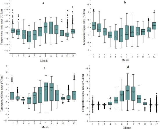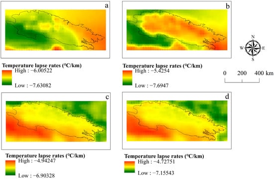 3.2. Spatial Variation Characteristics of Temperature Lapse Rates