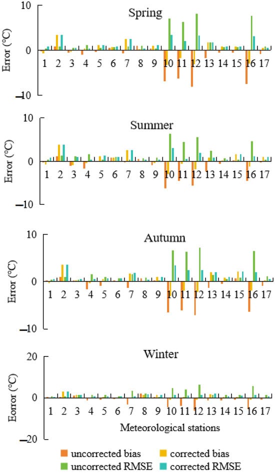 | No. | Corrected Bias in Spring | Corrected Bias in Summer | Corrected Bias in Autumn | Corrected Bias in Winter | Uncorrected Bias in Spring | Uncorrected Bias in Summer | Uncorrected Bias in Autumn | Uncorrected Bias in Winter |