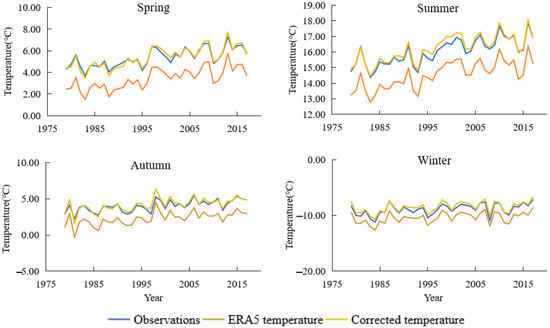 2.4.3. Verification of ERA5 Reanalysis Temperature Correction Results