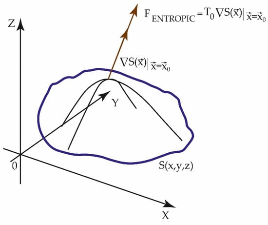If the temperature of the saturated air increases, due to the effect of the thermal transfer of the same pollutants, its capacity to contain water vapor will increase and the relative humidity will decrease. From a dynamic perspective, if the entropic forces due to pollutants are greater than those of urban meteorology and RH in particular, they can favor an increase in environmental dryness. When considering the forces of an entropic nature (2) originated by the entropy surface, S (x, y, z; Figure 1) [,,,], we have the following: