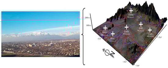 The city of Santiago is located at 33.5° S and 70.8° W. It contains a population of 8,420,000 inhabitants, representing 40% of the total population of the country, on a surface of approximately 641 km2. It is located in the middle of the country, at a height of about 520 m.a.s.l. The altitude above sea level increases from west to east. It is surrounded by two mountain chains: the Andes and the Coastal Mountain range. Its climate is Mediterranean (Figure 3). The driest and warmest months are from December to February, historically reaching maximum temperatures of around 35 °C in the shade (air temperature in the sun); however, these temperatures are currently exceeded. Given its topography and the dominant meteorological conditions, there is, in general, a strong horizontal and vertical dispersion of pollutants generated by an important number of sources in the city (heating, vehicles, industries, etc.), especially during fall (20 March–21 June) and winter (21 June–23 September). The emissions have a tendency to increase given the also increasing population density, which implies an increase in fixed and mobile sources. In addition, the number of vehicles has increased rapidly in recent years.