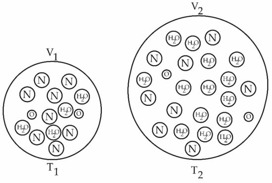 RH is a thermodynamically controlled property of air. Thermodynamics provides substance to psychometry [], the study of the transformations of air necessary for its use in a multitude of fields: food preservation in chambers, air conditioning of premises, drying processes and drug manufacturing, metrology, explosive atmospheres, environments in computer rooms, textile industry, clean rooms, etc. [,].