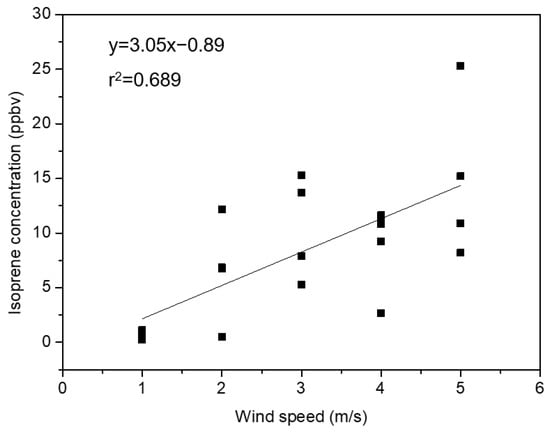 Correlation analysis between northerly winds speed and isoprene concentrations.