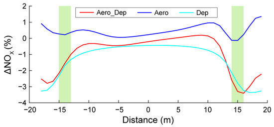 Average ΔNOx (%) via the aerodynamic and dry deposition effects of roadside trees.