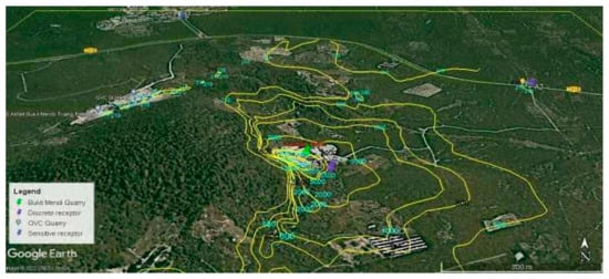 - Bui, L.T.; Nguyen, P.H.; Nguyen, D.C. Model for assessing health damage from air pollution in quarrying area—Case study at Tan Uyen Quarry, Ho Chi Minh Megapolis, Vietnam. Heliyon 2020, 6, e05045. [Google Scholar] [CrossRef] [PubMed]