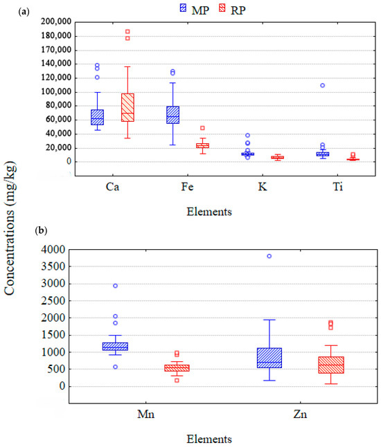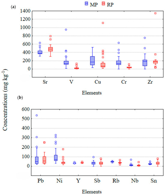 3.2. Concentrations of Potentially Toxic Elements in Magnetic and Residual Particles