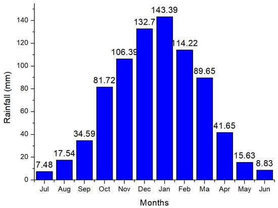 The long-term average monthly rainfall across the 22 stations in Enkangala Escarpment for the period of 1972–2022.