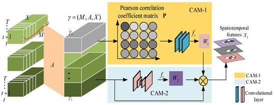 (2) Then, the tensor undergoes processing through a channel attention module 1 (CAM-1). We calculated the Pearson correlation coefficients between tensor and at each site and defined them as the spatial features Pij, .