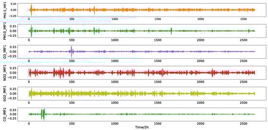In this section, we qualitatively analyze the prediction performance of the self-supervised spatiotemporal coding network and visualize the feature extraction capability of the CSST-AQP framework. Figure 9 shows the visualization results of the PM2.5 component, PM10 component, O3 component, NO2 component, SO2 component, and CO component after the initial network coding process, respectively.