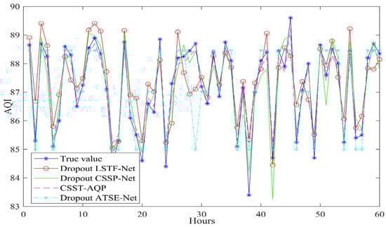 In Figure 19, the proposed CSST-AQP model maintains consistent predictive accuracy across diverse datasets, with R2 values consistently constrained within the narrow range of 0.92–0.97. This performance stability, as evidenced by the overlapping learning curves across different experimental groups, indicates remarkable model robustness against dataset variations. Particularly, the model is able to preserve prediction fidelity when handling datasets with distinct statistical distributions and noise patterns, suggesting strong generalization capabilities inherent in our architectural design.