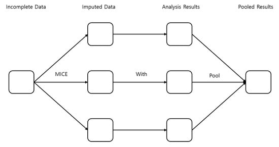 The regression model is used to predict and replace missing values iteratively. This process is performed sequentially for all variables containing missing values. To enhance the stability of the imputed values, the entire process is repeated multiple times. In this study, the imputation process was repeated 10 times to ensure stability and consistency.
