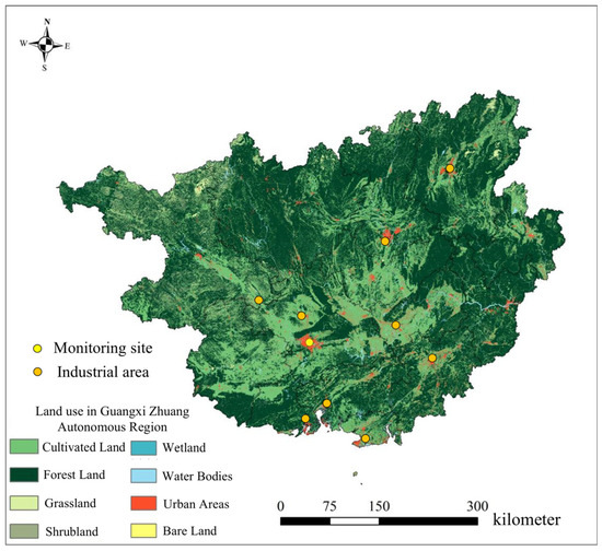 - Yuanlai, H. Analysis of Spatiotemporal Changes in Environmental Air Quality in Nanning Urban Area From 2018 to 2022. J. Green Sci. Technol. 2023, 25, 139–143. (In Chinese) [Google Scholar] [CrossRef]