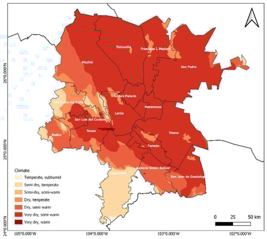 - National Institute of Statistics and Geography (INEGI). Vector Data Set of Climatic Units, Scale 1:1 000 000, Edition 2008; INEGI: Aguascalientes, Mexico, 2008. Available online: https://www.inegi.org.mx/app/biblioteca/ficha.html?upc=702825267568 (accessed on 12 January 2024). (In Spanish)