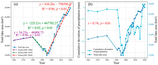 3.1. Relationship Between Lake Area Change and Precipitation Anomaly