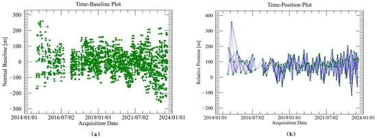 Connections between the Sentinel-1 SAR acquisitions with the spatial (a) and temporal baselines (b).