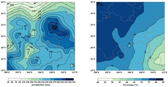 (a) Cumulative autumn precipitation in West China (September–November) and (b) September–October precipitation as a percentage of total autumn precipitation.