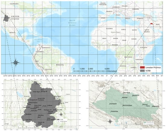 Lorestan in Iran and UCRB in the United States are mainly characterized as mountainous, snow-dominated, and cold-climate regions. Figure 1 illustrates the geographical location of UCRB within the United States and Lorestan province in Iran.