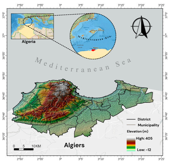 - Alioua, N.E.H.; Kemmouche, A. Assessing Urban Expansion of Algiers with Random Forest-Based Multi-Index Using Landsat Imagery. In Proceedings of the 2024 IEEE Mediterranean and Middle-East Geoscience and Remote Sensing Symposium (M2GARSS), Oran, Algeria, 15–17 April 2024; pp. 139–143. [Google Scholar]