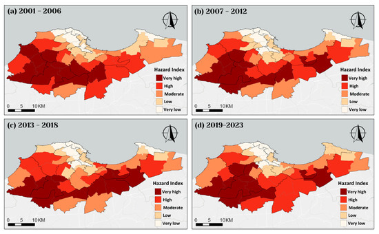 | Hazard | H1: LST Land surface temperature | The temperature of the Earth’s surface is measured using satellite images of thermal bands | (+) | [17,20,37] | |
