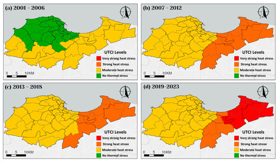 - UTCI increased in Algiers between 2001 and 2023, reaching the strong heat stress category.