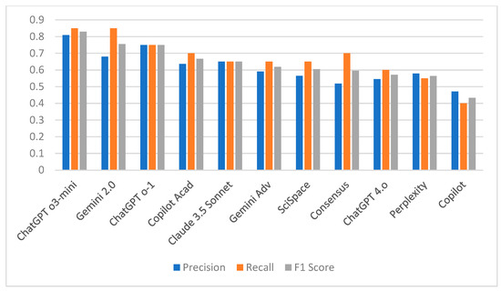 - The tools selected in this study—ChatGPT, Gemini, Claude, and Copilot—were chosen based on their high accessibility and popularity at the time of data collection (February–April 2024). These models were publicly available via user-friendly interfaces and were widely adopted across general-purpose applications, including scientific, medical, and educational use cases [42,43,44].