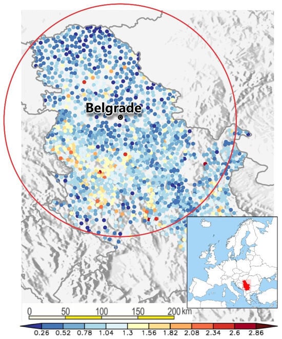 The representative area of the sounding validity of 160 km can apply to Serbia. A similar proximity sounding distance of 150 km was used for Central Europe [26], and 167 km [27], 185 km [28], and 200 km [29] for the United States.