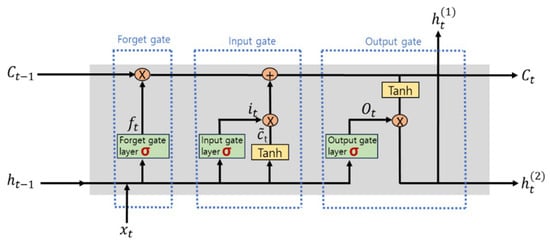 The core component of the LSTM network is the cell state, which flows horizontally across modules. The cell state plays a crucial role in ensuring that information from the initial LSTM layer can influence the output. Additionally, the sigmoid layer selectively retains or discards information within each module. Through the interaction between the sigmoid layer and the cell state, LSTM mitigates the issue of gradient-based long-term memory loss, which commonly affects conventional RNNs [17]. The detailed structure of LSTM is illustrated in Figure 1.