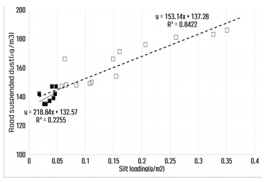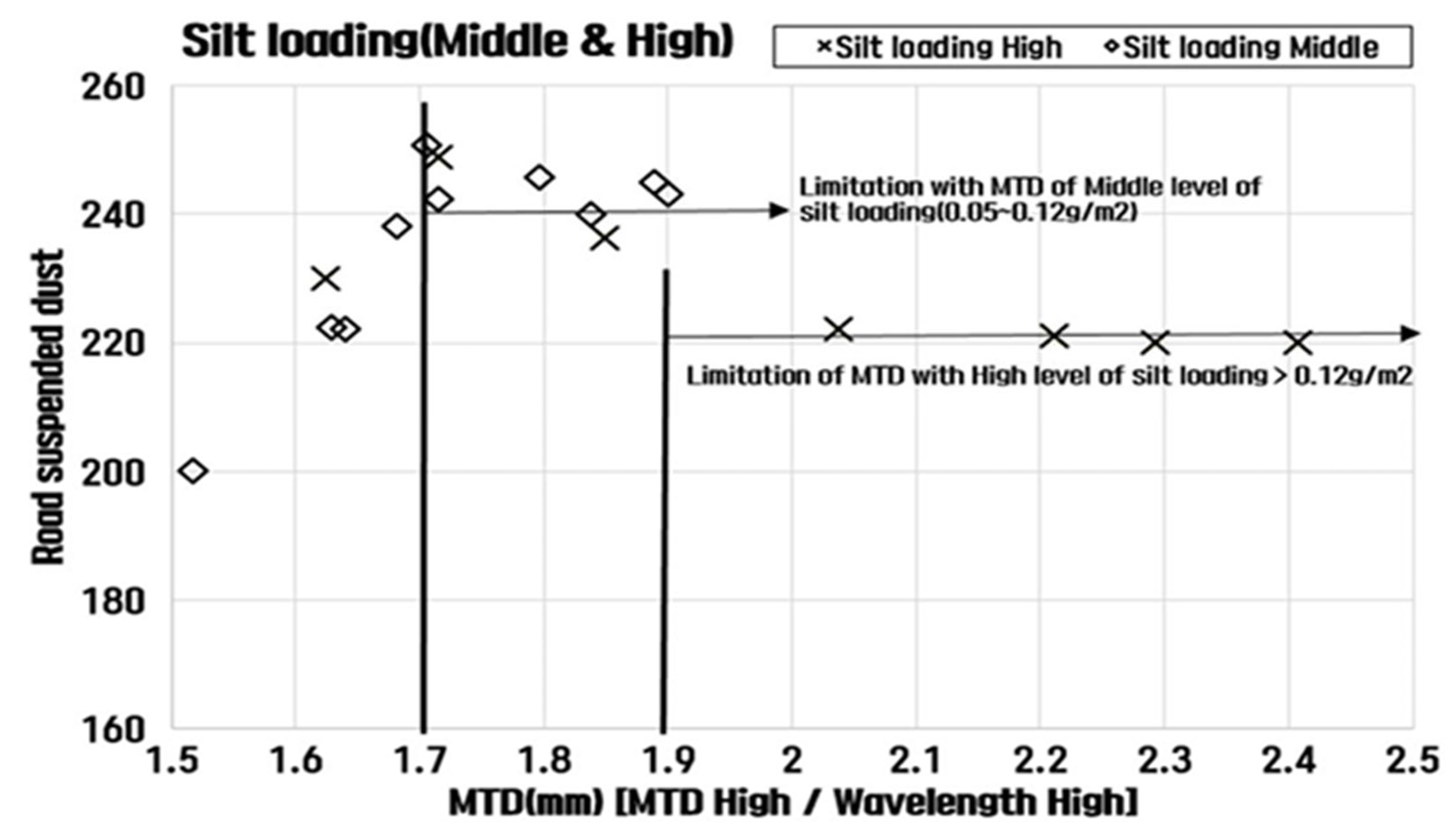 Road-suspended dust based on the level of MTD in silt loading 0.05~0.12 g/m2.