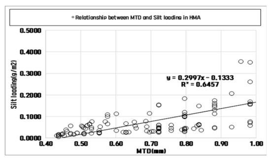 Relationship between mean texture depth with silt loading in Hot Mix Asphalt.