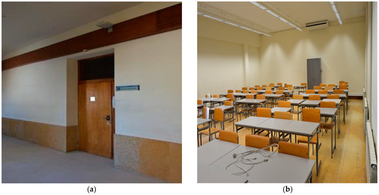 Room 3.3 (a) General view of the entrance. (b) Internal view of the monitored room 3.3.