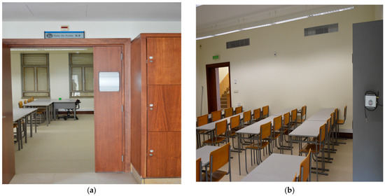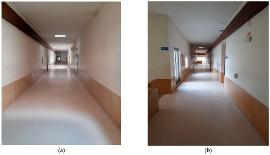 Corridor (a,b) views of the monitored corridor, access to classrooms in the didactic block, including room 6.3.