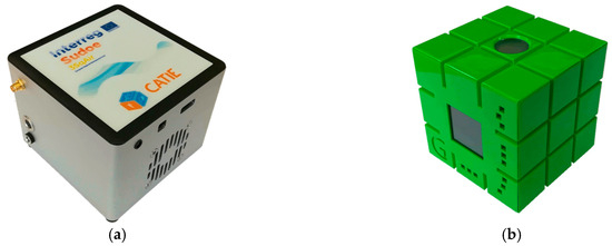 The second device used is the GreenMe cube, manufactured by the French company GreenMe (Paris, France). This sophisticated plastic cube collects environmental data through its internal sensors, as seen in Figure 6b. Small perforations on the cube allow air to reach the sensors. It collects data on approximately 10 environmental parameters, including volatile organic compounds (VOCs), Ta, noise levels, and others. Two units of GreenMe cubes, labeled Cube 35 and Cube 42, were used at DEM-FCTUC.