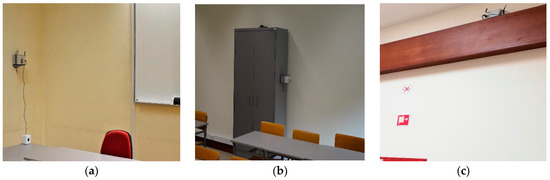 Monitoring systems location (a) Room 6.3; (b) Room 3.3; (c) semi-external corridor.