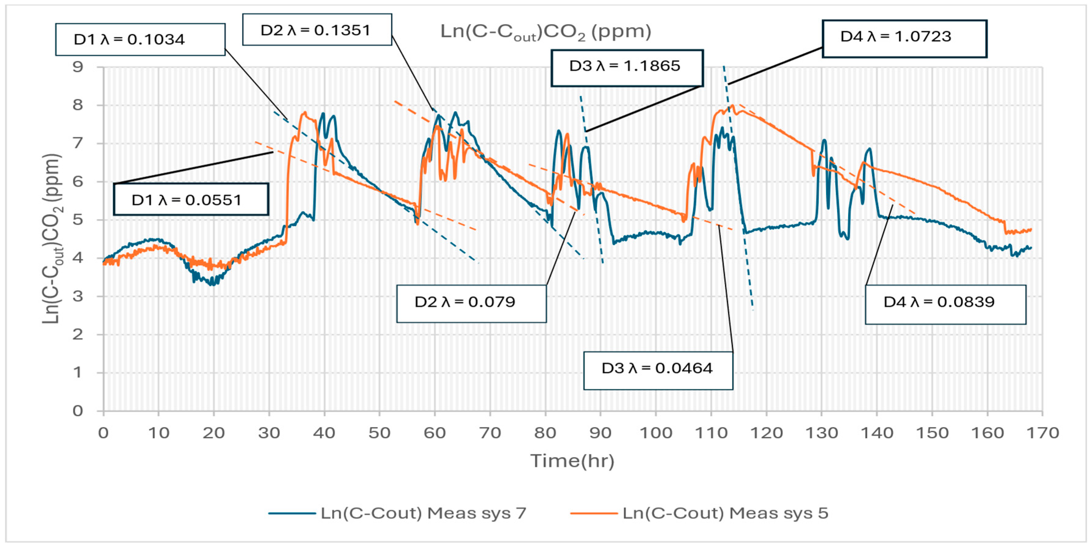 - Cui, S.; Cohen, M.; Stabat, P.; Marchio, D. CO2 tracer gas concentration decay method for measuring air change rate. Build. Environ. 2015, 84, 162–169. [Google Scholar] [CrossRef]