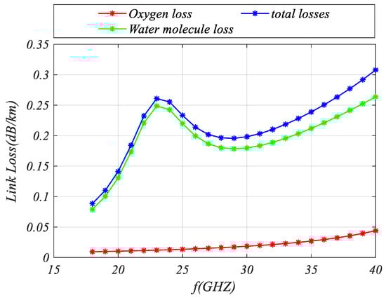 - For the K/Ka band signals, except for a relatively large absorption at 22.3 GHz due to the loss of oxygen molecules, the attenuation coefficients of both water vapor and oxygen molecules show a gradually increasing trend.
