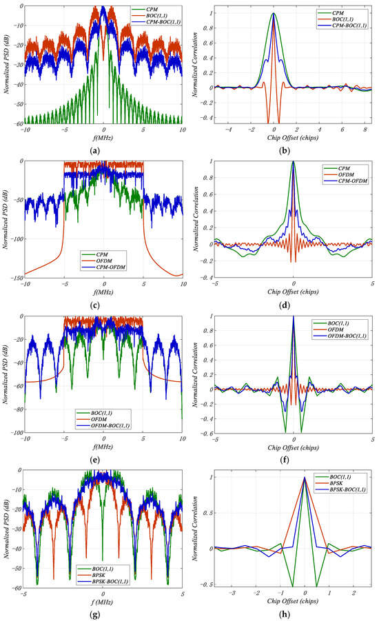 - Xue, L.; Li, X.; Wu, W.; Dong, J. Multifunctional Signal Design for Measurement, Navigation and Communication Based on BOC and BPSK Modulation. Remote Sens. 2022, 14, 1653. [Google Scholar] [CrossRef]