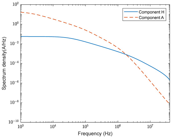 Although the peak current of a single Component H waveform is only 10 kA, its rise time is one order of magnitude faster than that of the Component A waveform, which is commonly employed in lightning tests. Consequently, the Component H waveform contains significantly richer high-frequency components. The spectral comparison between the Component H and A waveforms is illustrated in Figure 2. Therefore, the MB test environment differs substantially from the large-current, high-energy, single-pulse discharge processes characterized by the A, B, C, and D components in the lightning test environment.