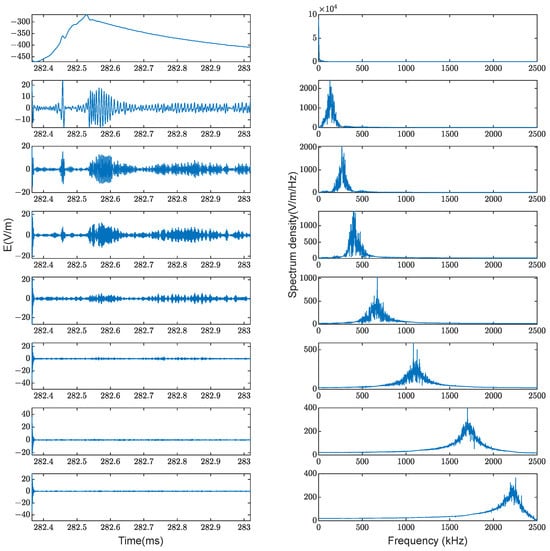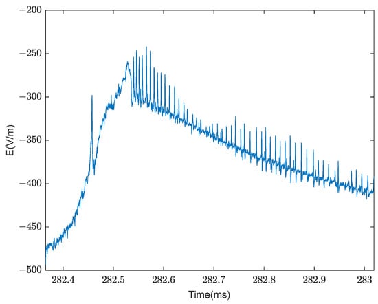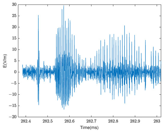 The average value of the detrended cross-correlation index is used as the threshold to select the second, third, and fourth IMF components for reconstructing the lightning signal. The time-domain waveforms are presented in Figure 12, where it can be observed that the low-frequency trend term and high-frequency noise of the impulse group signal have been effectively suppressed.