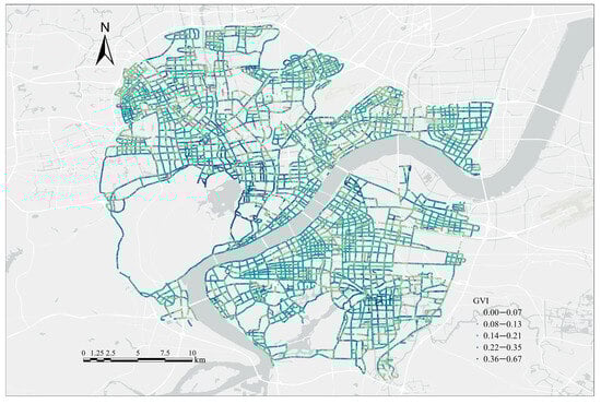 21]. Defined as the visible proportion of urban greenery, GVI demonstrates a quantifiable correlation with traditional canopy coverage metrics [