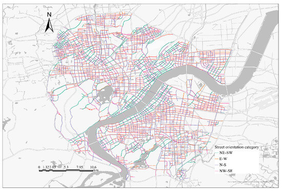 (2) Street morphological parameters significantly influence GVI’s cooling efficacy. North–south oriented streets show the strongest explanatory power of GVI on daytime temperature (R2 = 0.3474), followed by northwest–southeast (R2 = 0.3315) and east–west (R2 = 0.3325), with northeast–southwest streets having the weakest effect (R2 = 0.2618). At night, east–west streets exhibit the most significant GVI impact (R2 = 0.1003). During the daytime, high height-to-width ratio streets (H/W > 2) show the most pronounced GVI cooling (quadratic coefficient = 4.3487), possibly due to amplified transpiration in confined environments. Low H/W streets (H/W < 1) rank second (3.4224), while medium H/W streets (1 < H/W < 2) show weaker effects. At night, low H/W streets demonstrate optimal GVI cooling (R2 = 0.0399), while high H/W streets exhibit minimal regulation due to heat retention (R2 = 0.0526).