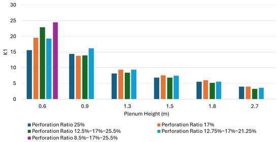 | Plenum Height (m) | Perforation Opening Ratio | Airflow Inclination Angle at the Vertical Location Above the Elevated Floor | K1 | |||