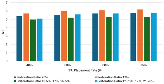 | FFU Arrangement Rates (%) | Perforation Opening Ratio | Airflow Inclination Angle at the Vertical Location Above the Elevated Floor | K1 | |||