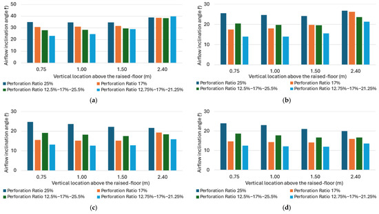 | Non-Uniform Perforated Plate Opening Ratio | Airflow Inclination Angle at the Vertical Location Above the Elevated Floor (m) | |||