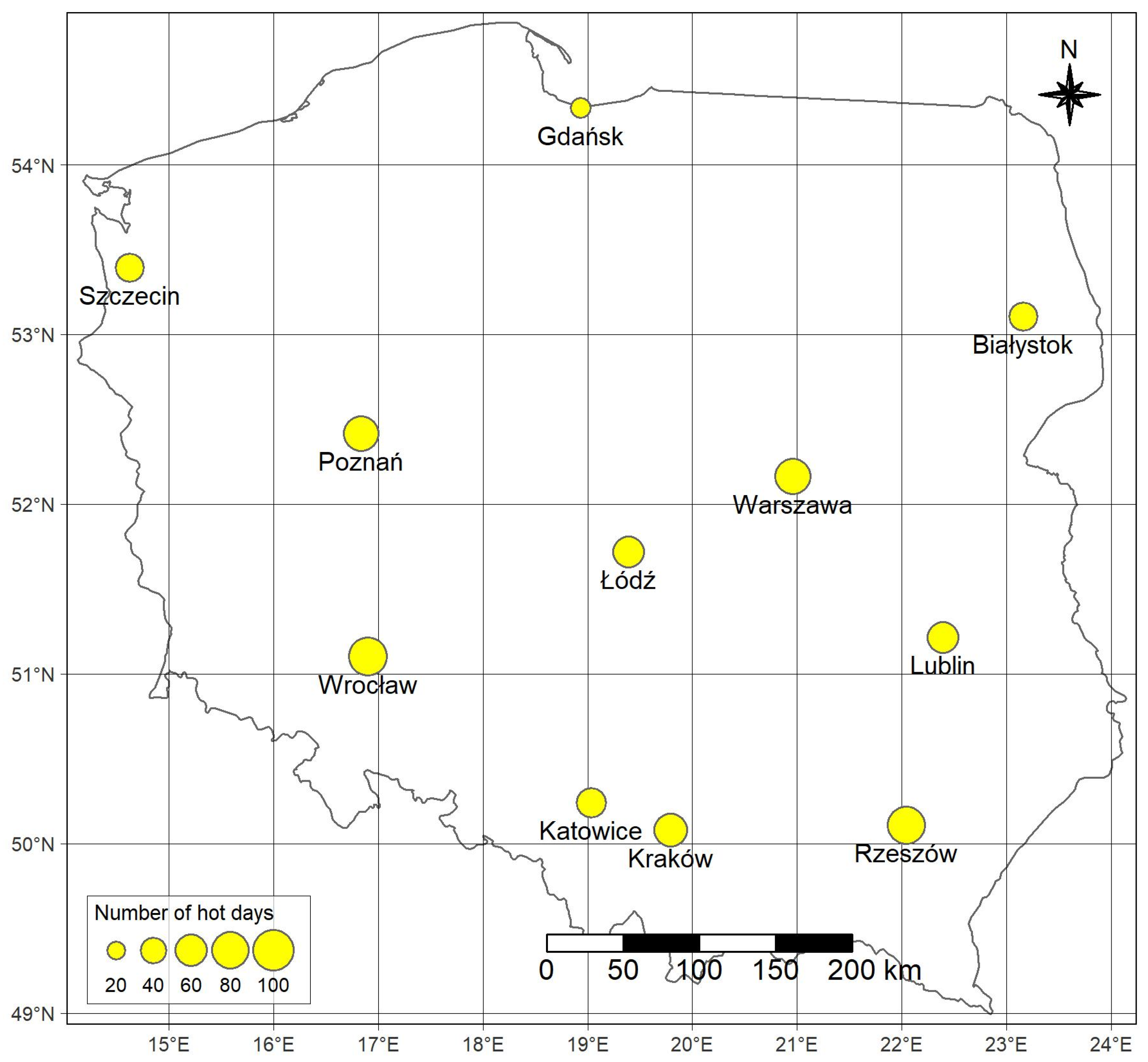 - Spatial heterogeneity in UTCI values and associated heart rate responses across Polish cities highlights regional differences in bioclimatic vulnerability. The most unfavorable biometeorological conditions, characterized by the frequent occurrence of strong and very strong heat stress, were observed in Southern Poland;